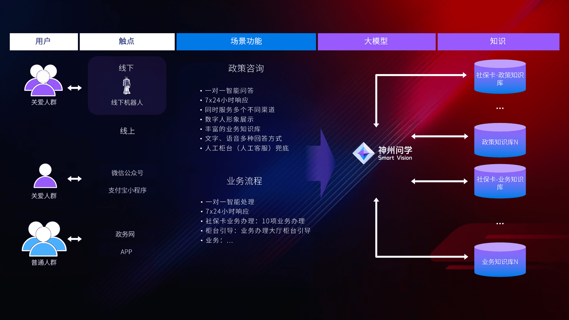 在服务大厅部署客服机器人,,,,在线上应用和小程序配置客服数字人,,724小时为群众解答常规问题,,,,客服机器人无法处理的,,,,转现场人工处理。。